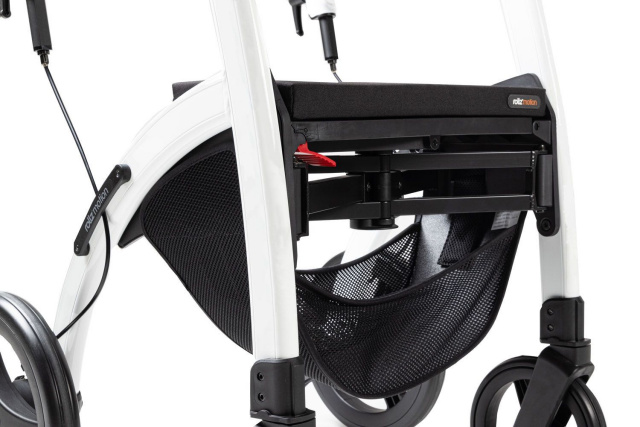 Simply attach to the frame of your rollator with Velcro. The waterproof Shopper has a capacity of 22 lbs., measures 17 1/3"x 9" a separate zippered pouch stores wallets, glasses, etc.
